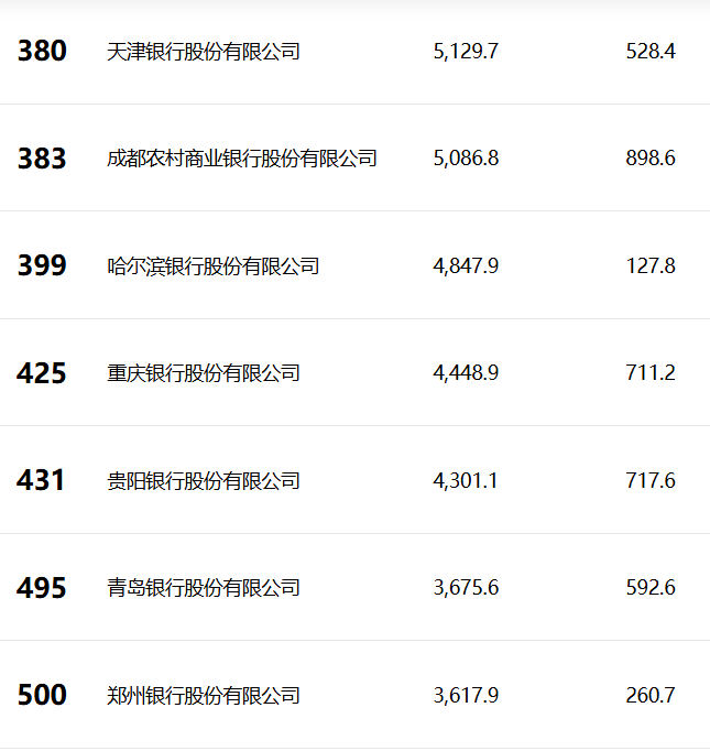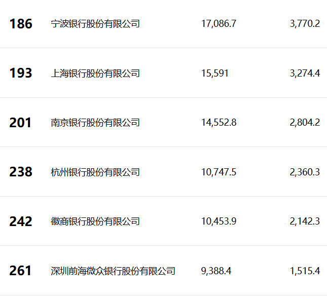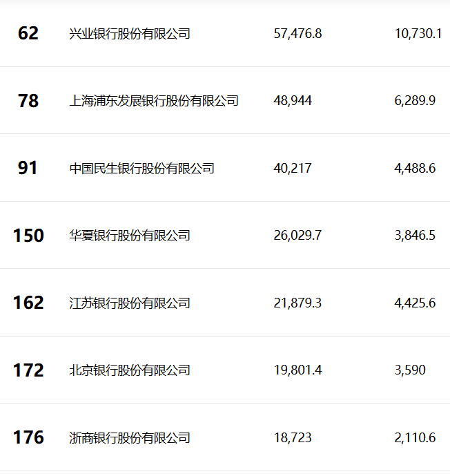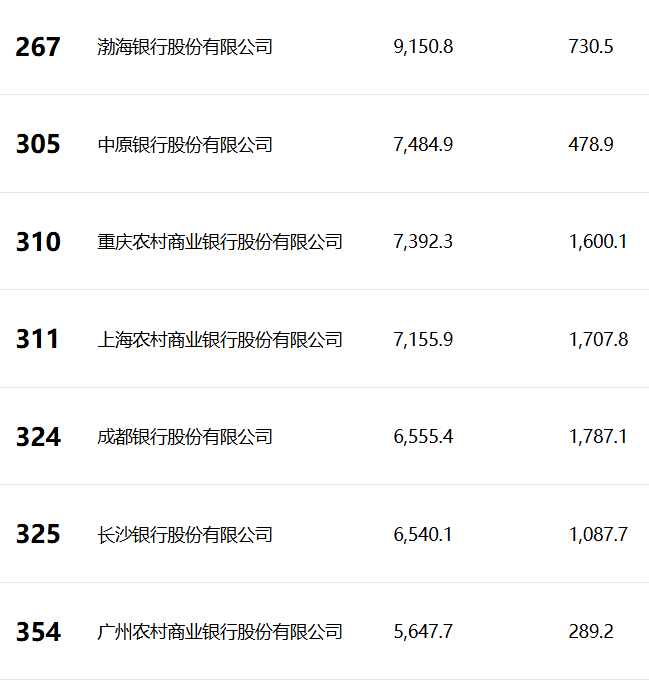在排行榜中,共有33家银行机构上榜。工行、农行、建行、中行位列前十。